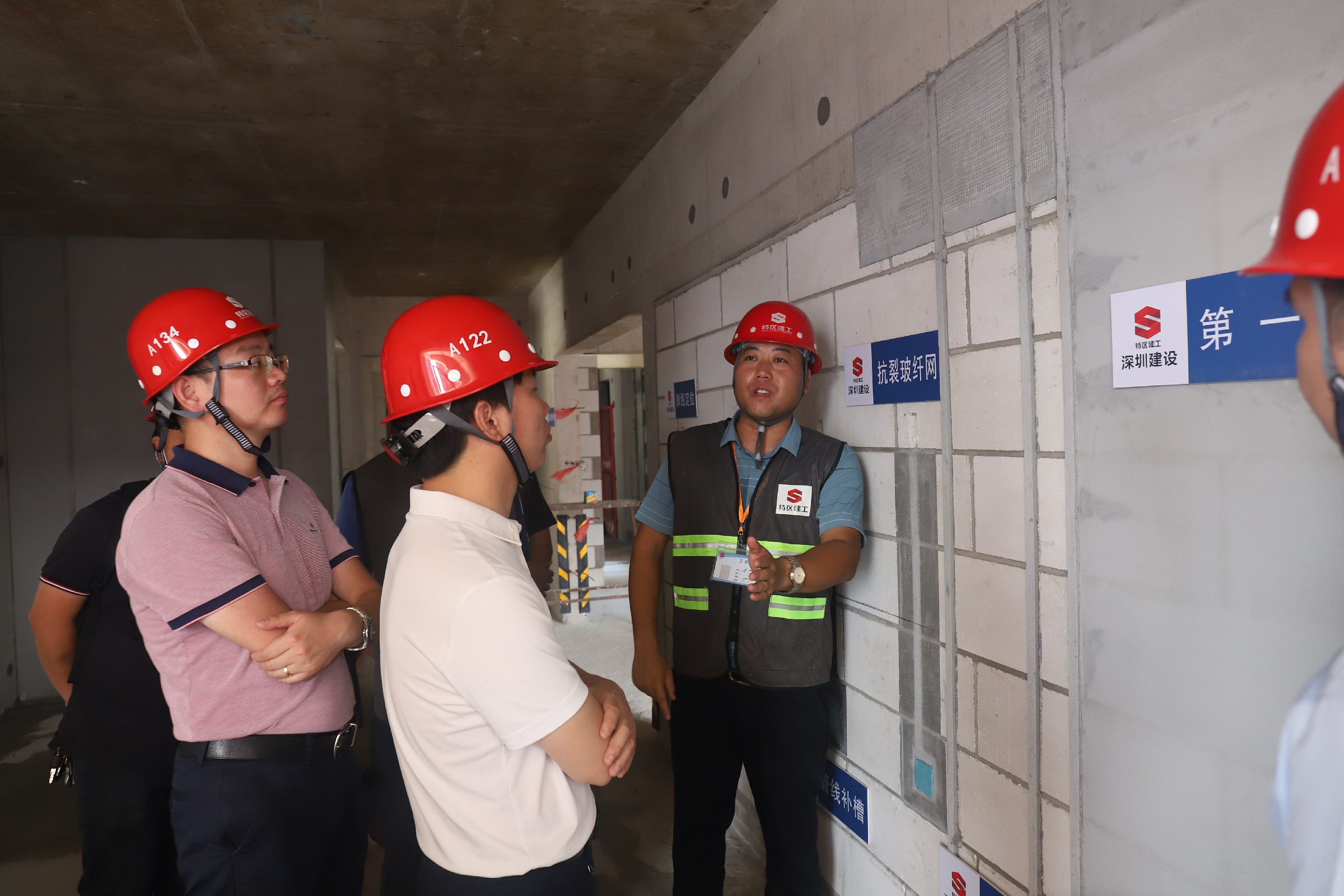2021年9月26日上午,建設(shè)集團(tuán)副總裁李蕃榮、總裁助理李孝軍及工程管理中心、技術(shù)研發(fā)與管理中心、安全管理部、機(jī)關(guān)各部室代表、分/子公司、廣東省內(nèi)項(xiàng)目部領(lǐng)導(dǎo)班子成員及技術(shù)骨干參加了現(xiàn)場(chǎng)質(zhì)量觀摩交流活動(dòng)。