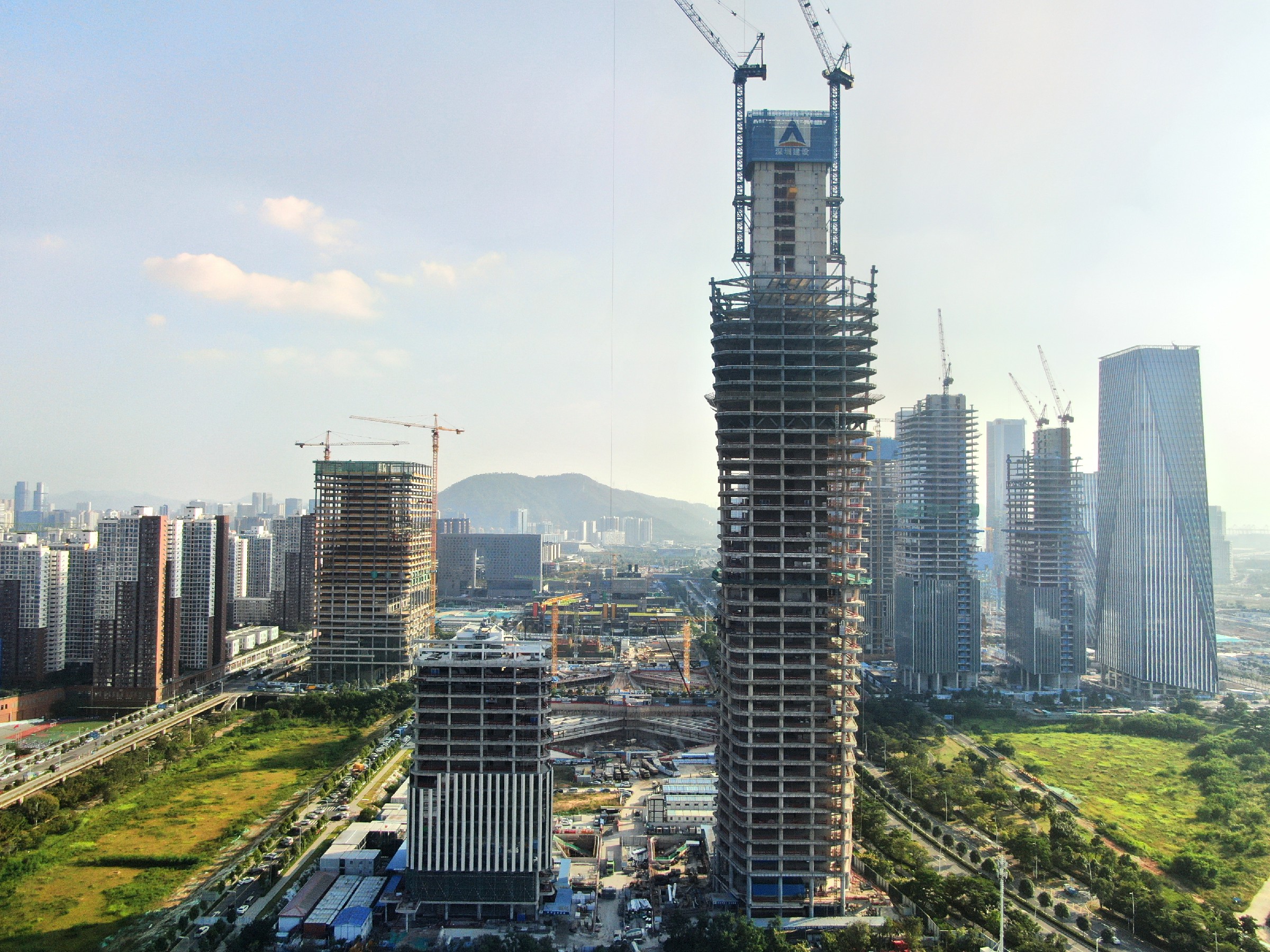 深圳市投資控股有限公司總工程師王戈、國新風(fēng)險(xiǎn)投資管理(深圳)有限公司執(zhí)行董事范士鈺等建設(shè)方相關(guān)領(lǐng)導(dǎo)、深圳市特區(qū)建工集團(tuán)有限公司副總裁尹劍輝、深圳市建設(shè)(集團(tuán))有限公司董事長黃海和公司領(lǐng)導(dǎo)班子成員、以及設(shè)計(jì)單位領(lǐng)導(dǎo)、監(jiān)理單位領(lǐng)導(dǎo)等出席封頂儀式。