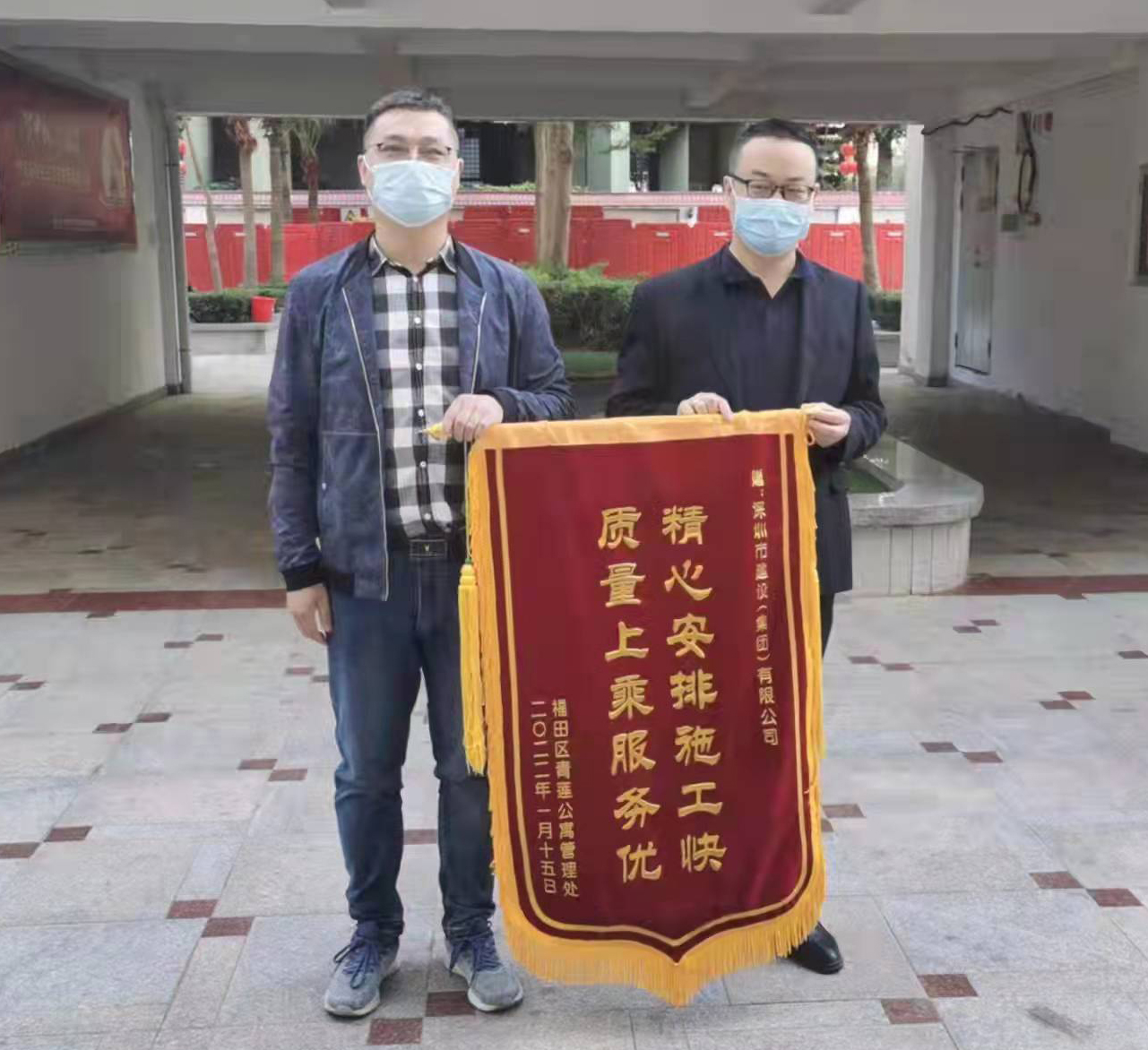 2022年1月21日,福田區(qū)青蓮公寓管理處有關(guān)同志向福田區(qū)第七期優(yōu)質(zhì)飲用水入戶工程(第五批)施工總承包項目部贈送“精心安排施工快 質(zhì)量上乘服務優(yōu)”的錦旗,項目經(jīng)理毛浣林代表項目部接受錦旗。此外,本項目施工范圍內(nèi)的部分小區(qū)向其他參建方贈送錦旗。 ...