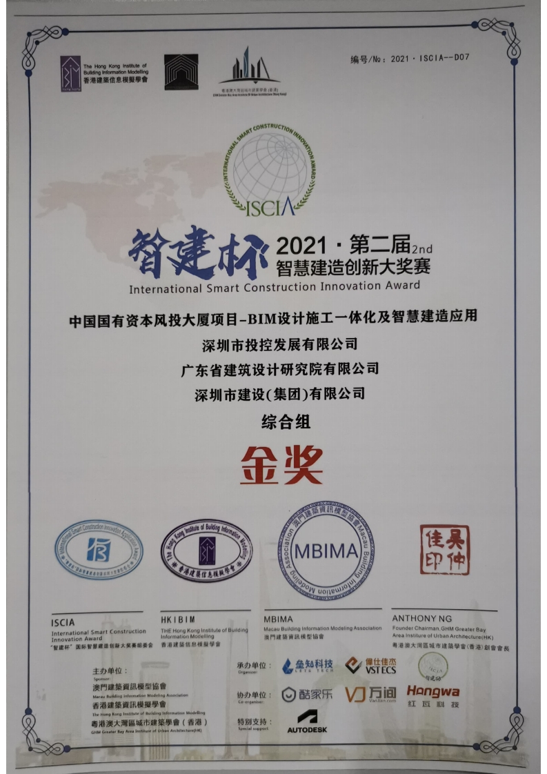 2021年12月27日,“智建杯”國際智慧建造創(chuàng)新應用大獎賽第二屆比賽頒獎儀式在深圳觀瀾格蘭云天國際酒店舉行。深圳建設集團承建的中國國有資本風投大廈項目以參賽作品《中國國有資本風投大廈項目-BIM設計施工一體化及智慧建造應用》,從全部1502項...