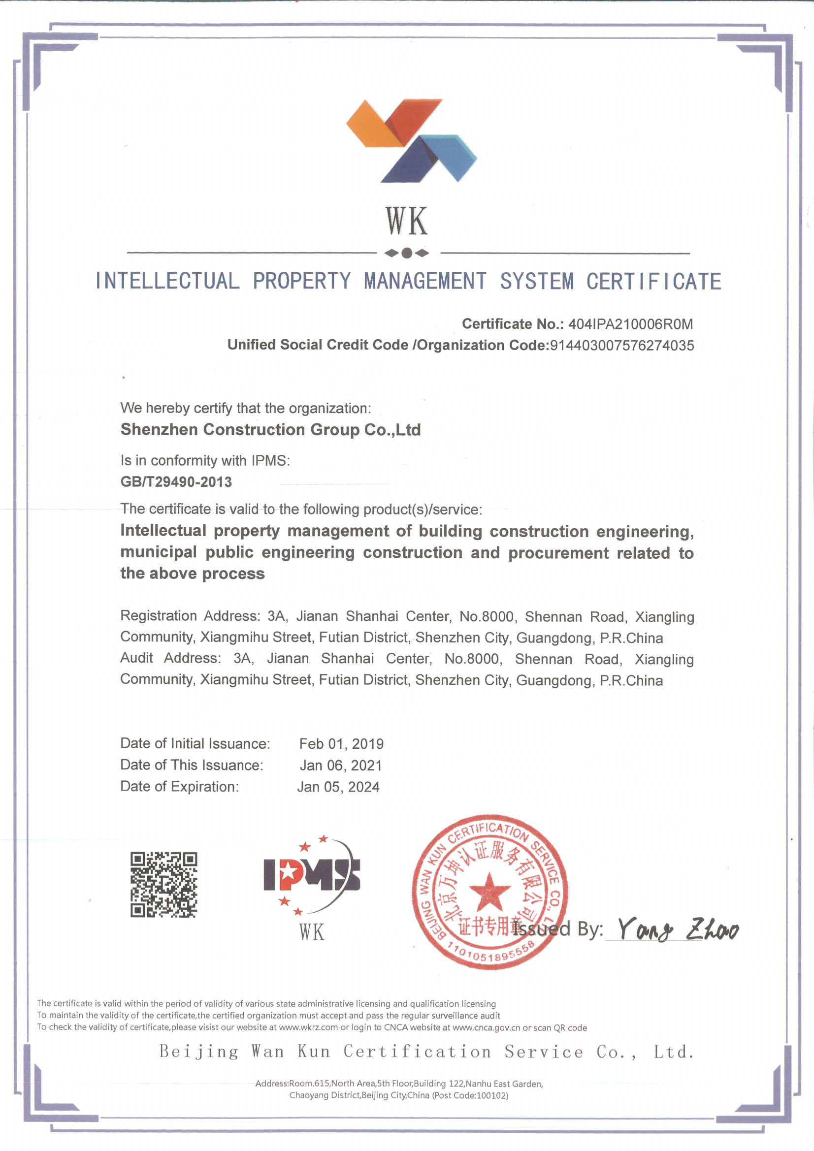 知識產權管理體系認證證書(英文版)