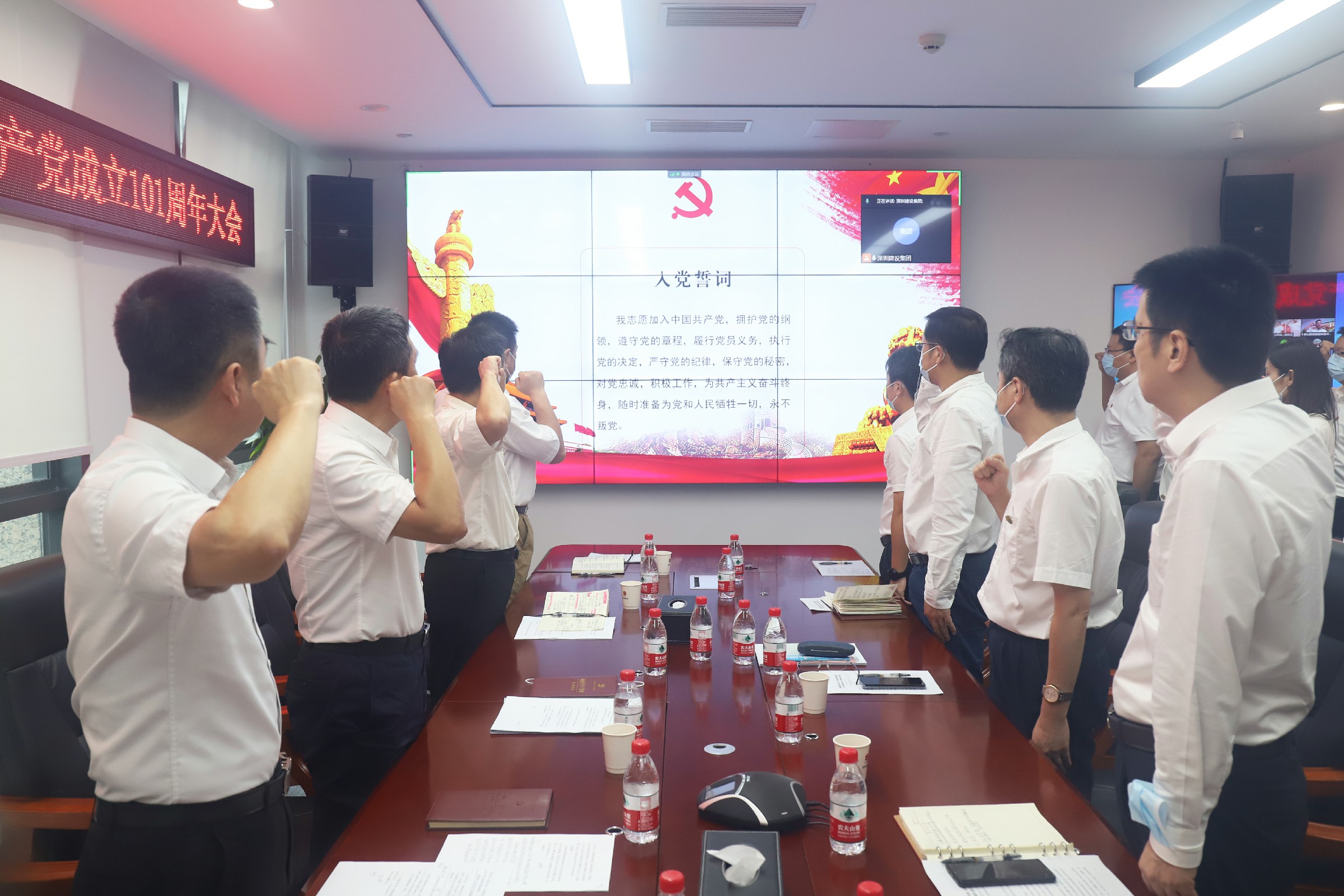 在黃海書記的帶領(lǐng)下,建設(shè)集團(tuán)全體黨員同志右手握拳,以歌聲的形式重溫誓詞,黨員們用洪亮堅(jiān)定的聲音,表達(dá)了對(duì)黨的忠誠(chéng)信仰和莊嚴(yán)承諾。